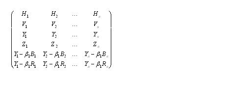 我們知道,傳統(tǒng)電視系統(tǒng)是由行向量H,幀向量V,亮度向量Y組成的三維線性空間的結(jié)構(gòu)。用以下的矩陣來表示: