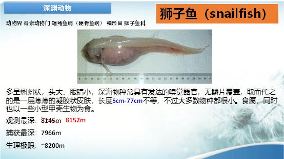 在2016年的考察中,首先對(duì)不同深度的海水波速進(jìn)行測(cè)量,其次是用攝像機(jī)在海底拍攝,收集深海的動(dòng)物和植物的情況,再次就是收集活的動(dòng)物。我們收集到在8000米以下生活的獅子魚和鉤蝦。可以說,我國(guó)對(duì)深海的生物研究有發(fā)言權(quán)了。