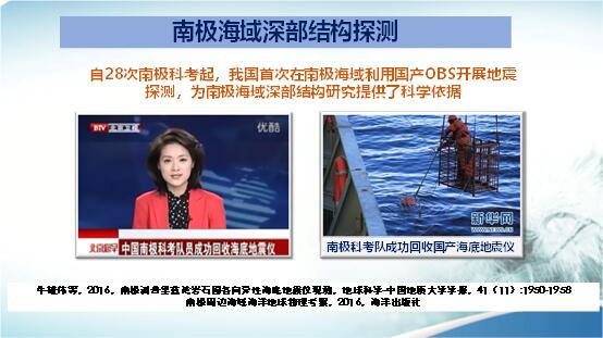 在南極地區(qū),我國(guó)有二處陸上地震臺(tái)站。在第28次南極科考時(shí)投放了海底地震儀,過了一年,在第29次南極科考船去那片海域回收時(shí),因那片海域結(jié)冰,沒法回收。根據(jù)設(shè)計(jì),海底地震儀最大留海時(shí)間為一年,大家都擔(dān)心失掉這兩臺(tái)儀器了??上驳氖?,又過了一年那片海域已經(jīng)沒有冰了,在回收時(shí),海底地震儀竟然浮到海面,這是在海底記錄時(shí)間最長(zhǎng)的一次試驗(yàn)。也為南極海域深部結(jié)構(gòu)研究提供了科學(xué)依據(jù)。