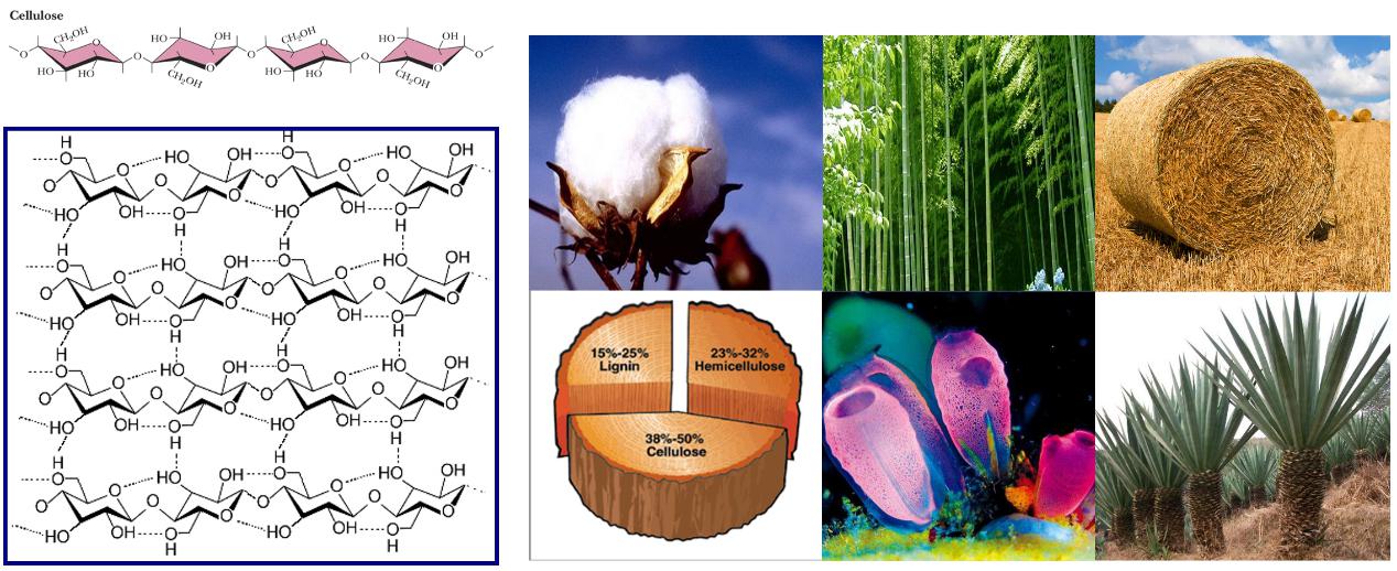 圖1 纖維素分子結(jié)構(gòu)、聚集態(tài)結(jié)構(gòu)與來源